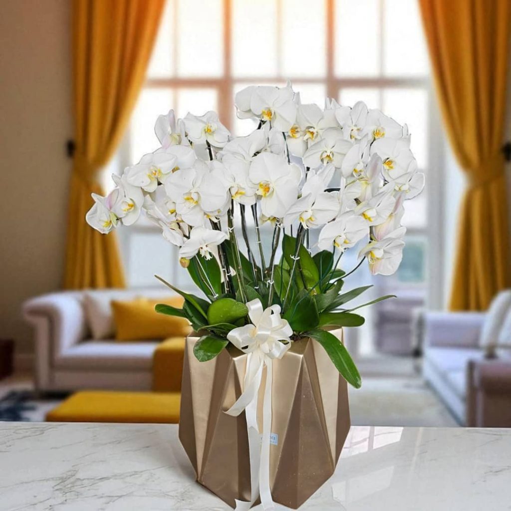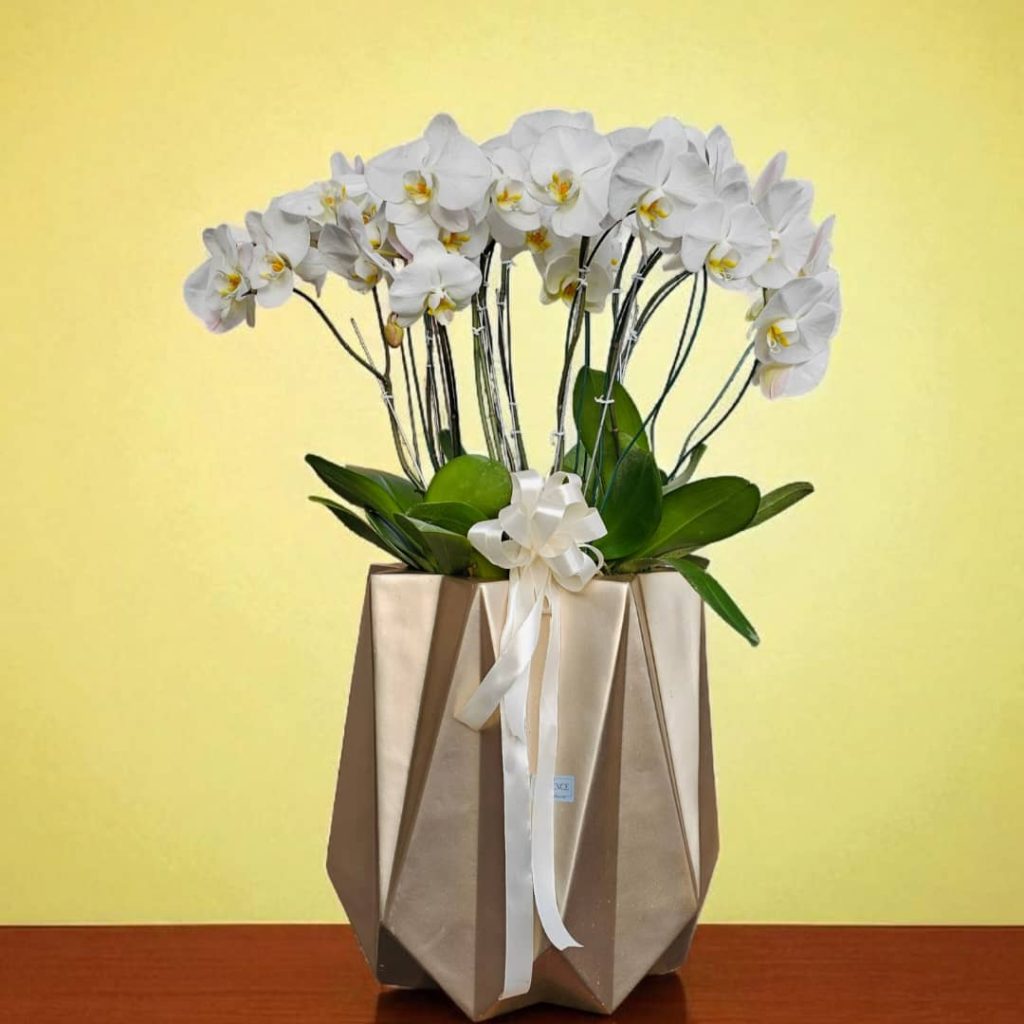 Orchid flower in an elegant white pot – گل ارکیده در گلدانی شیک و مینیمال از فلورانس