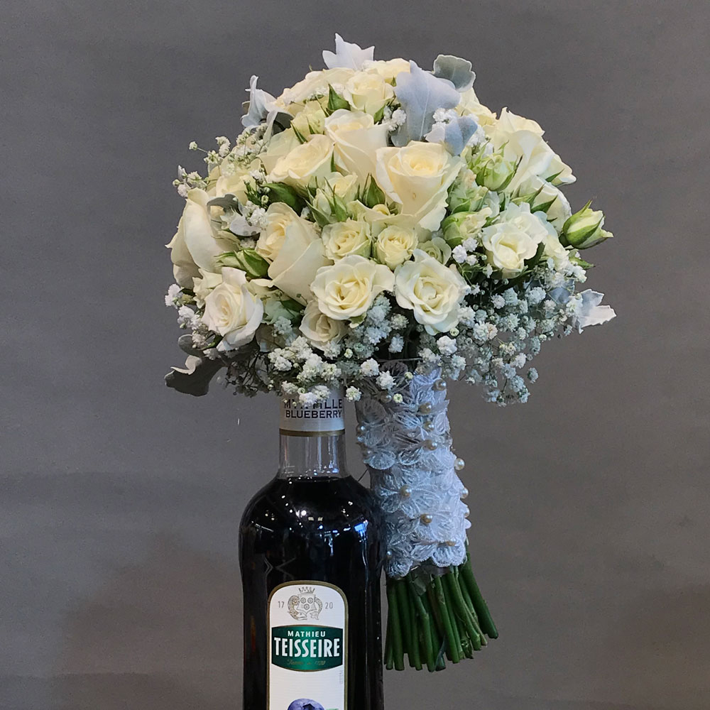 لیست گلهای استفادهشده و ظرف استفاده شده برای محصولگلهای اصلی این دسته گل، رز سفید کلاسیک و شکوفههای ژیپسوفیلا هستند. ترکیب لطیف این گلها در کنار برگهای نقرهای خاص، آن را از دیگر دسته گلها متمایز کرده. برای دستهبندی، از بند پارچهای توری سفید با مروارید استفاده شده که بهدست عروس جلوهای اصیل و فاخر میدهد. پایه آن نیز با ظرافت تمام پیچیده شده تا راحتی در دست گرفتن با زیبایی هماهنگ باشد. |
