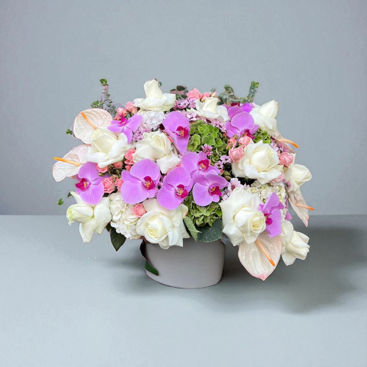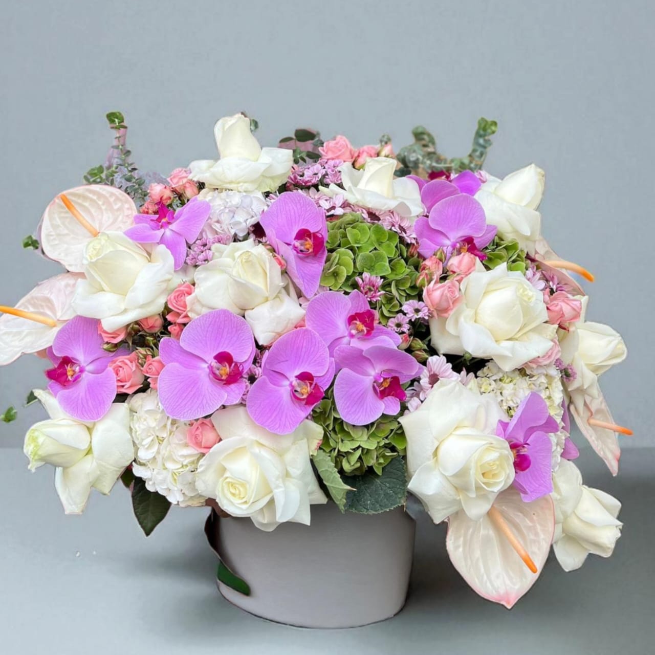 رز سفید همیشه نماد صداقت، خلوص و عشق پاک بوده است. در این گلدان، رزهای سفید با ارکیدههای صورتی در هماهنگی کامل قرار گرفتهاند تا پیامی از عشق بیپیرایه را منتقل کنند. این ترکیب برای مناسبتهایی مثل تولد، سالگرد، روز مادر یا حتی برای تزئین دکور منزل بسیار مناسب است.