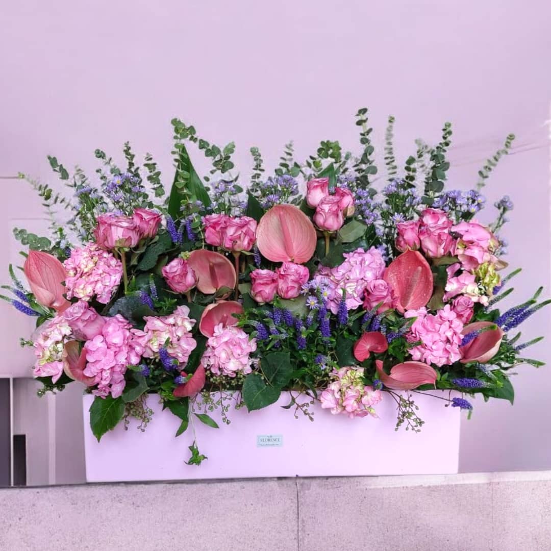- چیدمان هنرمندانه و طراحی بلند با گلهای تازه و صورتی