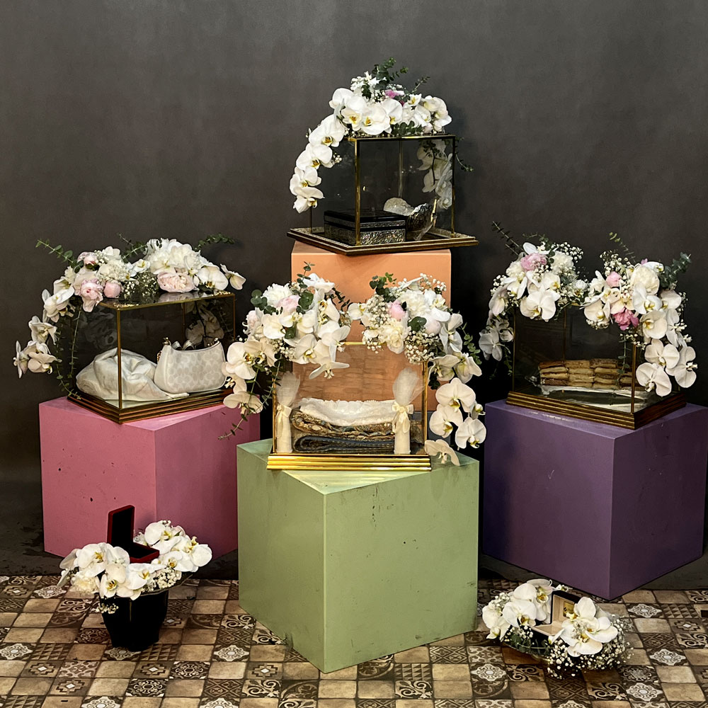 تقریباً ۳۰ در ۳۰ سانتیمتر برای هر باکسابعاد هر باکس حدوداً ۳۰x۳۰ سانتیمتر است و با چیدمان چند باکس در کنار هم، جلوهای چشمگیر و متفاوت برای مراسم شما فراهم میشود. این اندازهها کاملاً متناسب با قرارگیری روی میز و دکوراسیون فضای داخلی هستند. |