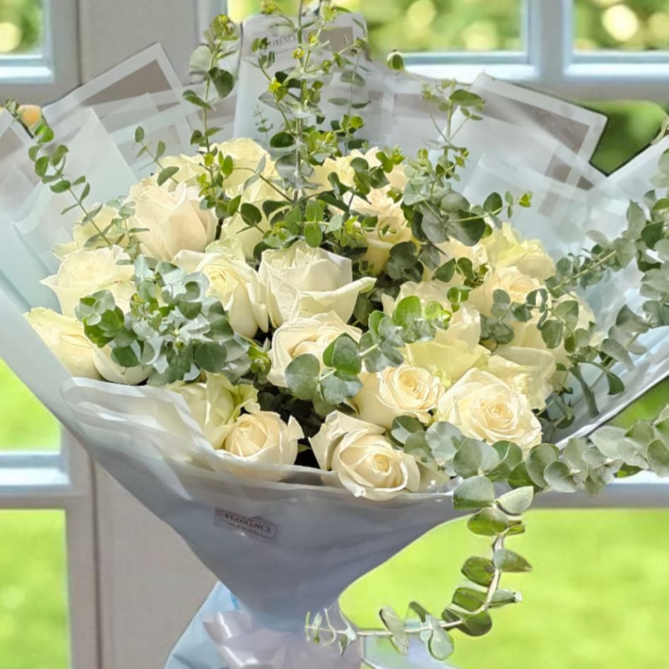 دسته گل رز سفید | آرامش خالص و زیبایی بیانتها