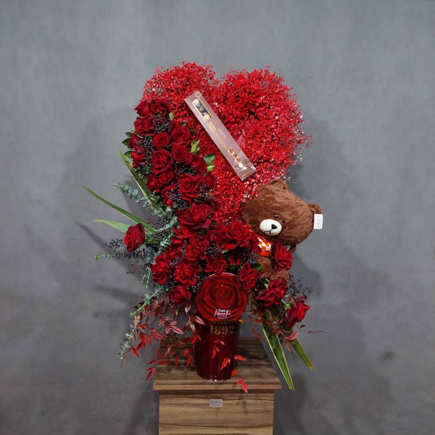 اما برای تو که سطل قرمز با رز قرمز با دیزاین ولنتاین را انتخاب کردهای،
