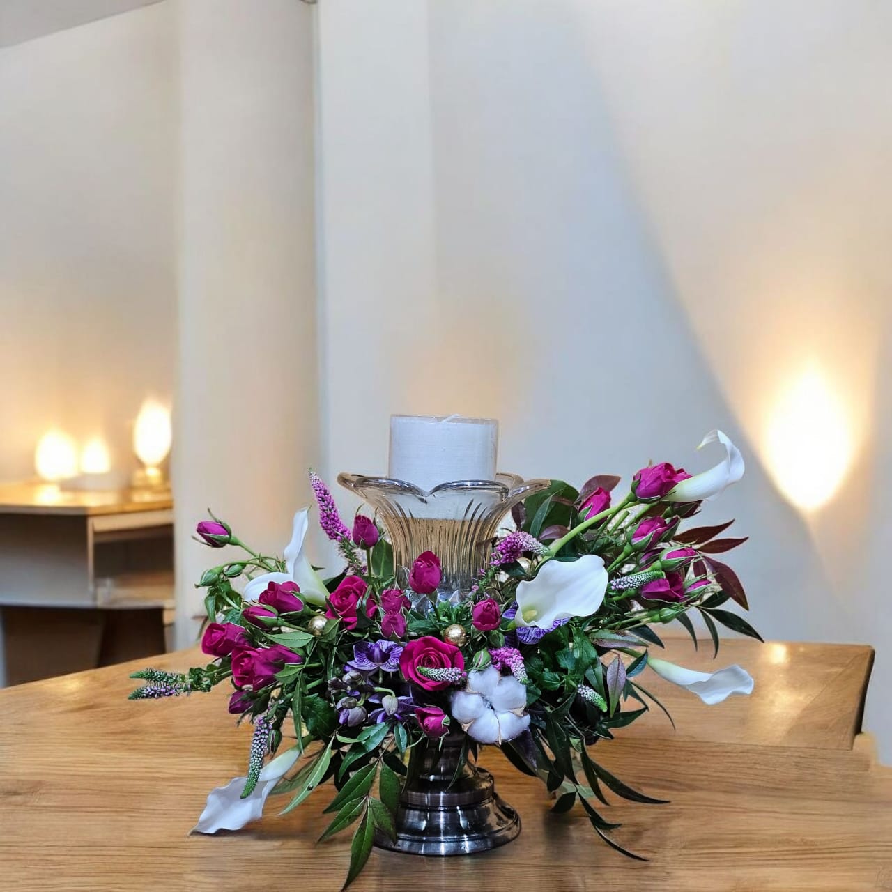 در این تصویر، بلور گل ژرنالی با طراحی ظریف شیشهای و ترکیبی از گلهای تازه و فصلی دیده میشود. این محصول با الهام از ژورنالهای گلآرایی روز دنیا طراحی شده و گلهایی با رنگهای سفید، صورتی ملایم و سبز روشن را درون خود جای داده است. ظاهر شفاف و هندسی بلور، حس نظم و زیبایی بصری را در فضای داخلی تقویت میکند. این گلدان ایدهآل برای استفاده در لابی هتلها، جشنهای خصوصی، یا هدیهای زیبا به عزیزان در روزهای خاص است. این مدل، یکی از محبوبترین انتخابها در فروشگاه فلورانس پلاس به شمار میرود.