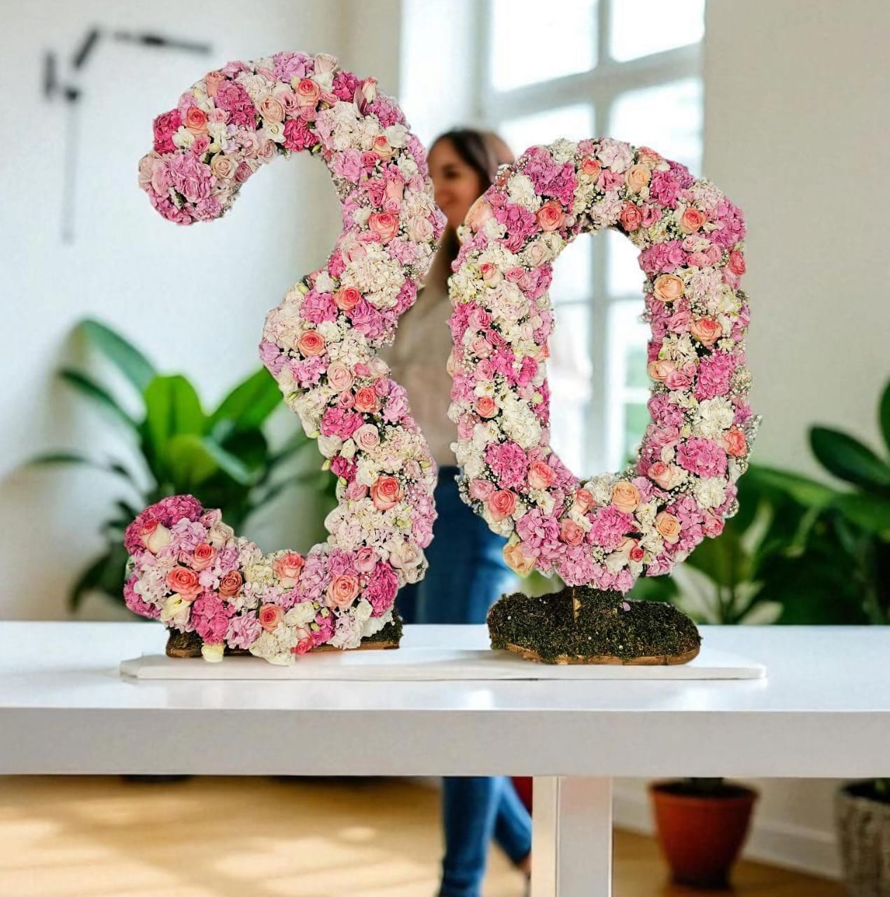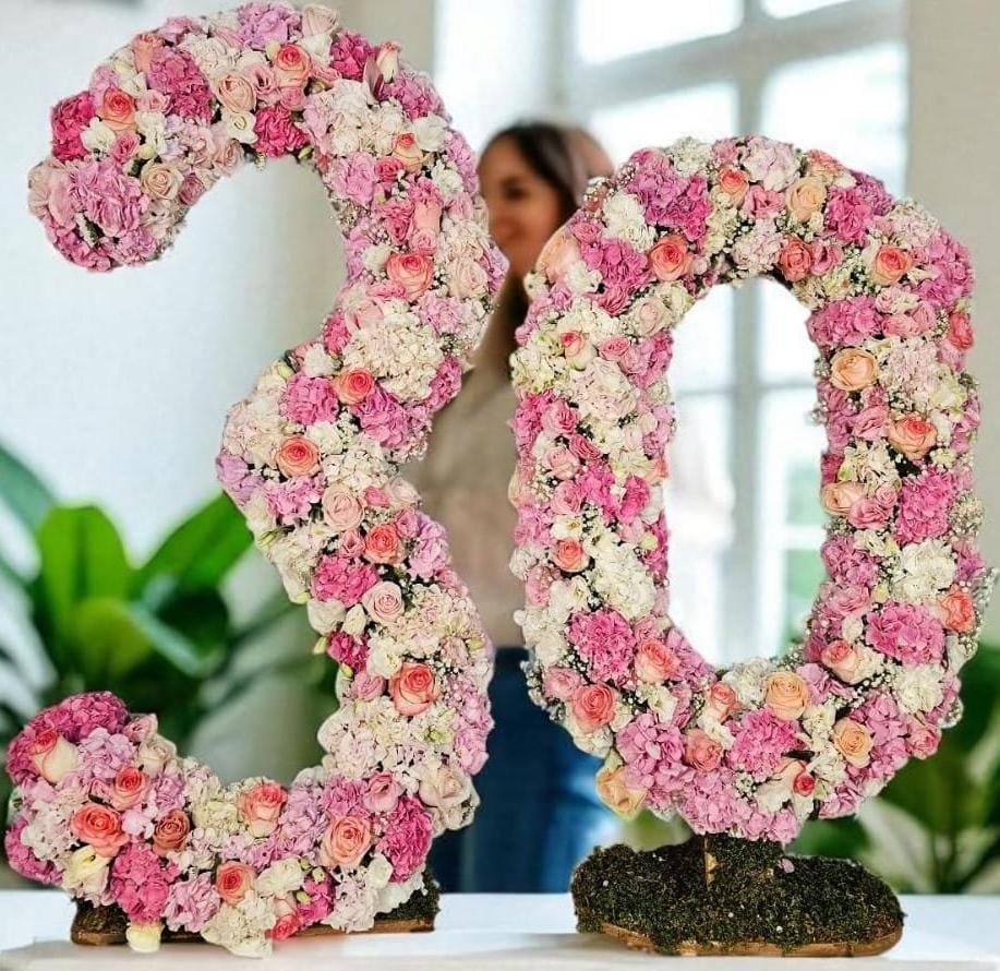 فریم عدد تولد با گل‌آرایی طبیعی و طراحی لوکس از گلفروشی فلورانس