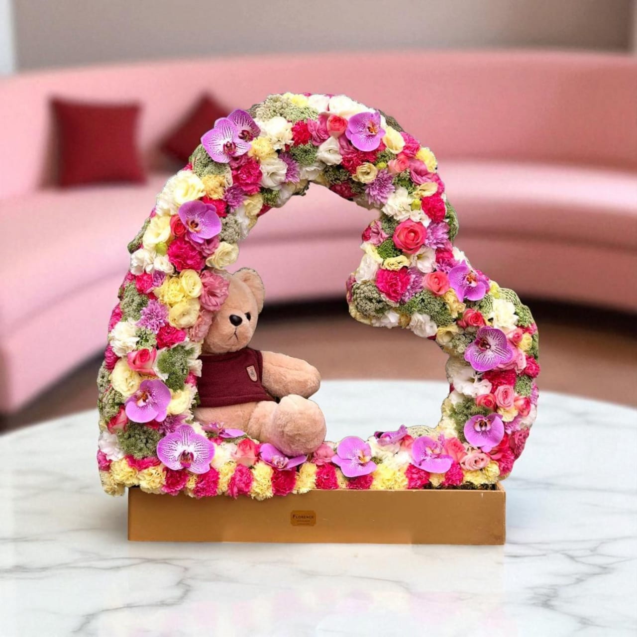 ترکیب رنگ و سبکگلآرایی این محصول با ترکیب رنگهای شاد و متنوع، حس نشاط و شادی را به محیط شما میآورد. طراحی منحصر به فرد قلب وارونه با گلهای زیبا و پرطراوت، فضایی رمانتیک و خاص را خلق کرده که هر کسی را جذب خود میکند. |