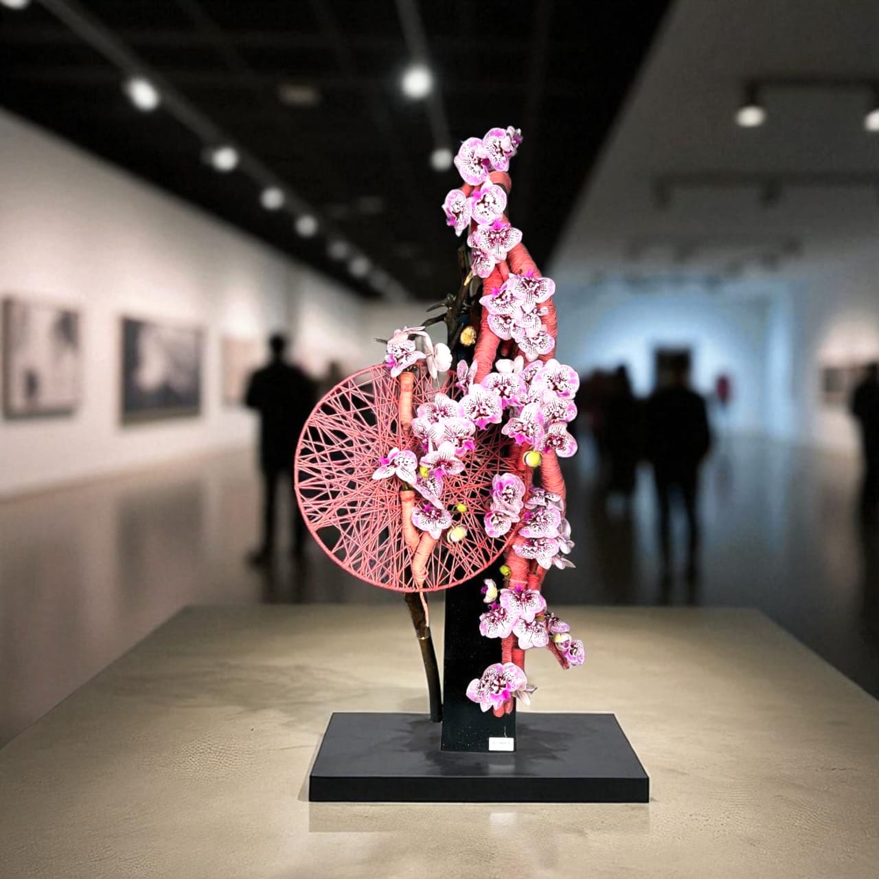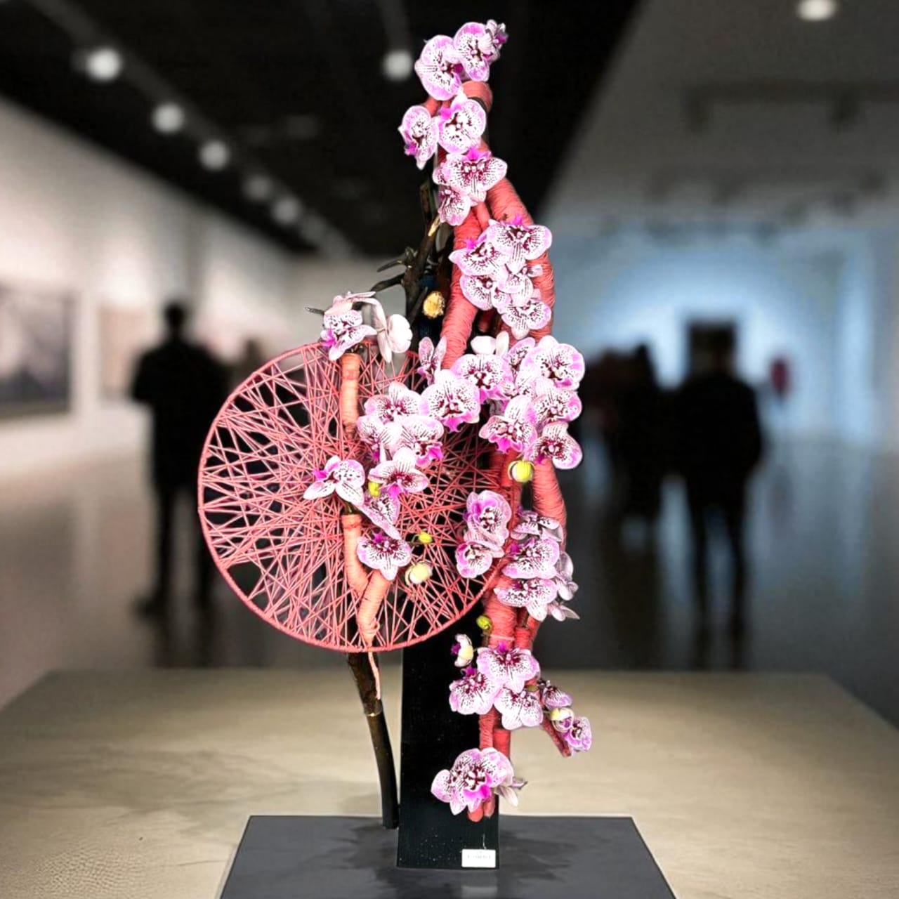 فریم مدرن سازه ای با طراحی هنری و گل‌های ارکیده صورتی