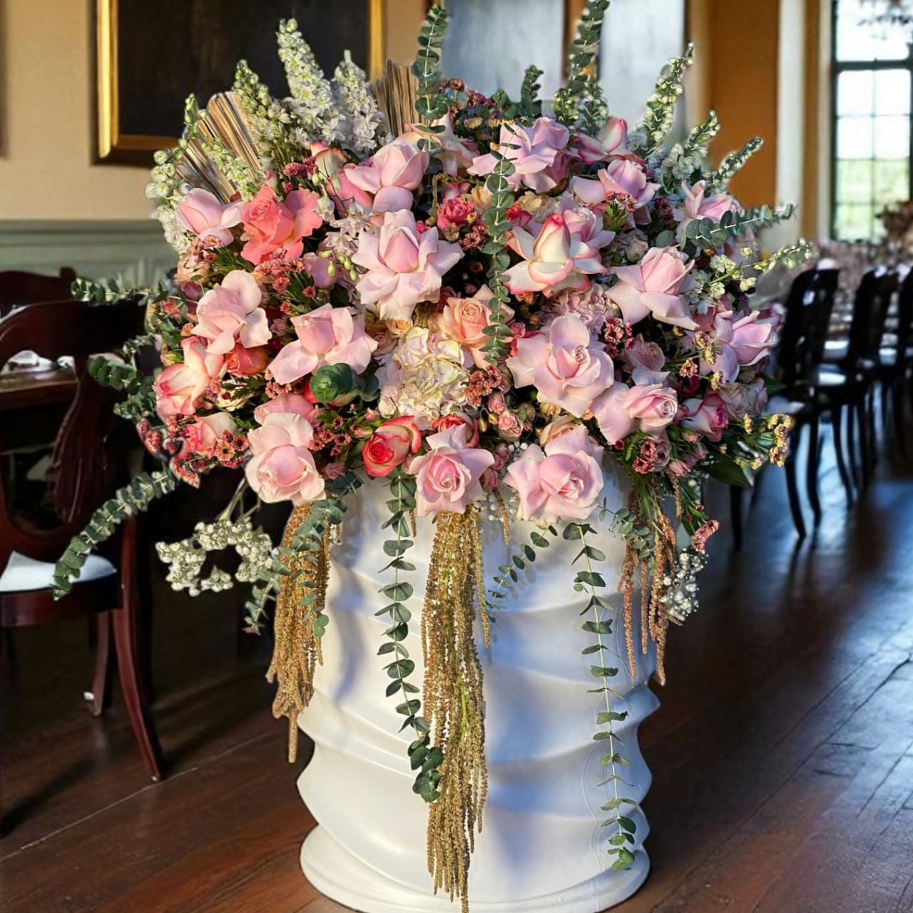دسته‌گل عاشقانه با گل‌های رز سفید از گلفروشی فلورانس پلاس