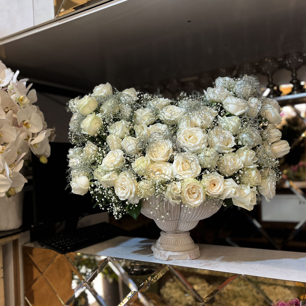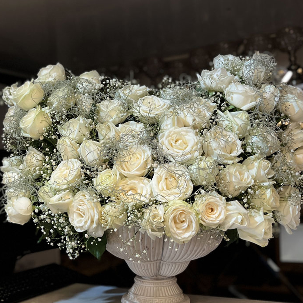 دسته‌گل عاشقانه با گل‌های رز سفید از گلفروشی فلورانس پلاس