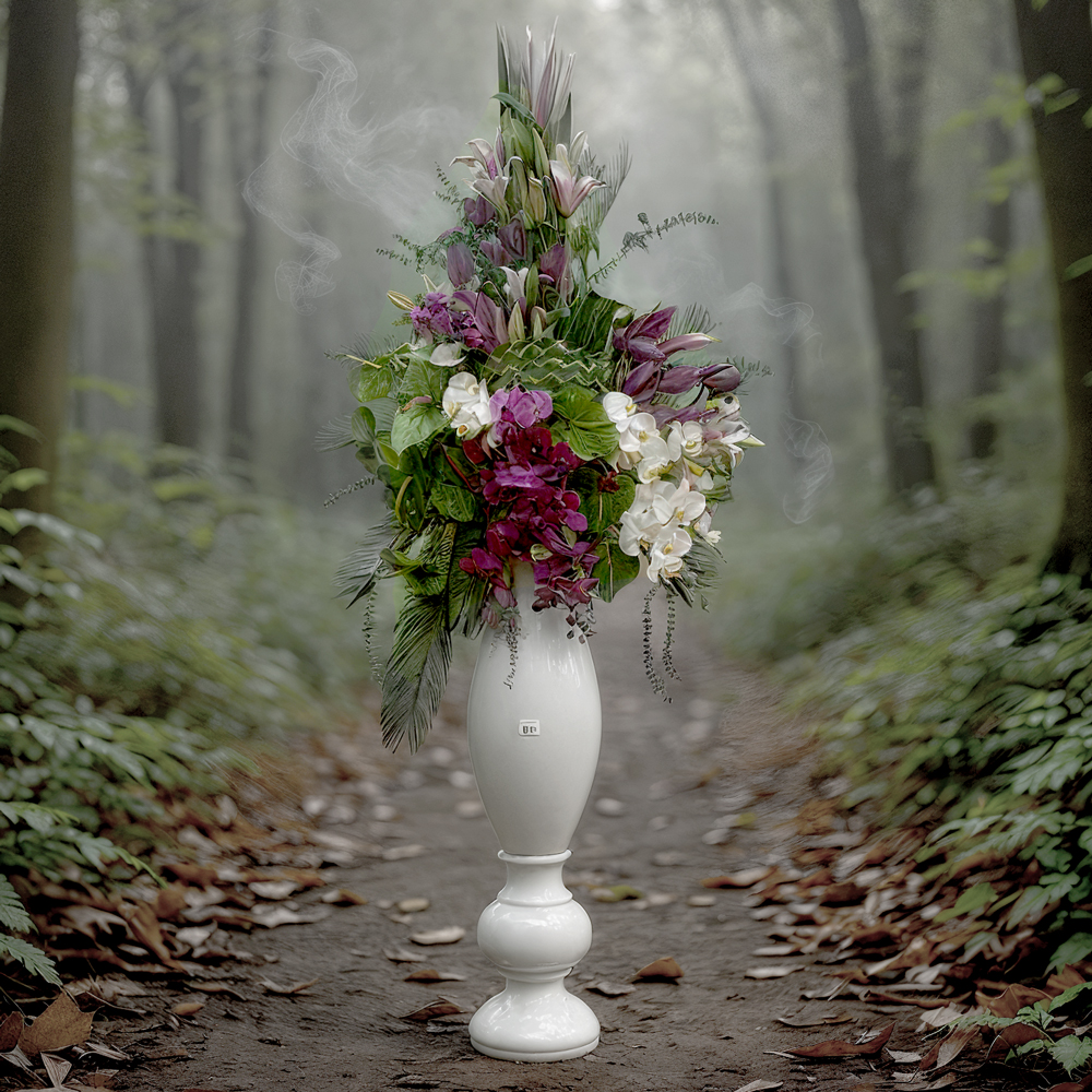 لیست گلهای استفادهشده و ظرف استفاده شده برای محصولاین گلآرایی باشکوه، ترکیبی از ارکیدههای سفید و بنفش، لیلیومهای بازنشده، برگهای فریمی زینتی و آنتوریوم سبز است که درون یک گلدان سفید بلند و براق قرار گرفتهاند. هر شاخه با دقت در فرم و زاویه، طوری چیده شده که یک ترکیب ایستاده و چشمنواز شکل بگیرد. گلدان انتخابشده، نهتنها حامل گلها، بلکه بخش مهمی از زیبایی نهایی محصول است. |